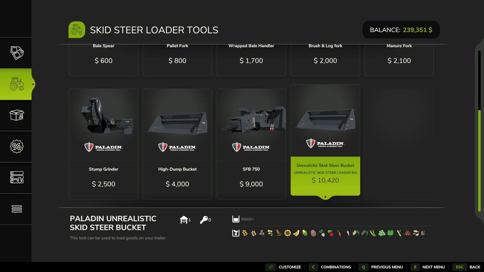 Top suggestions for Skid Steer Bucket FS25